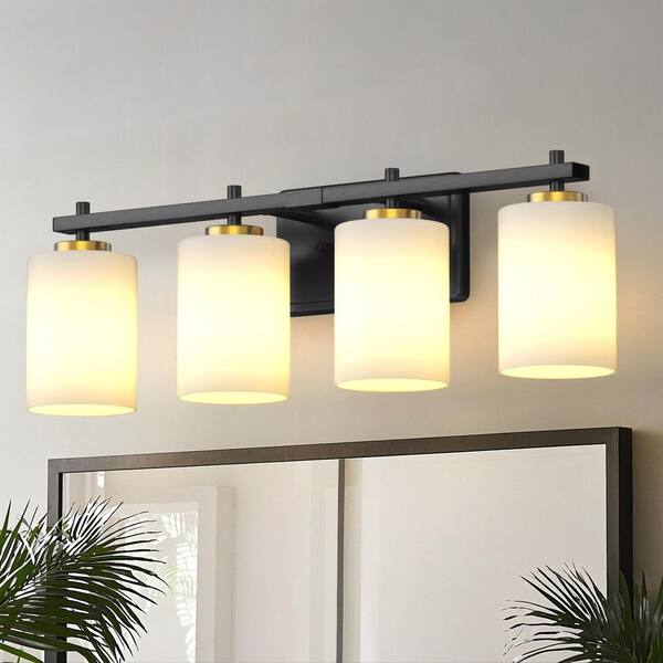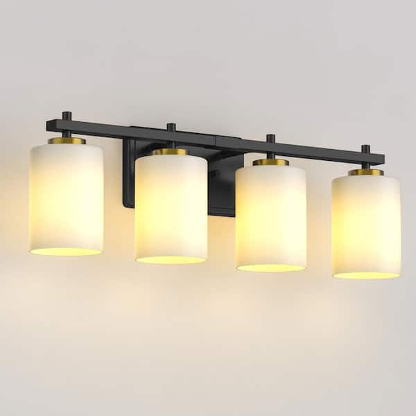 24 in. 4-Light Bathroom Vanity Light with Black and Gold Iron Frame and Frosted Glass Shade