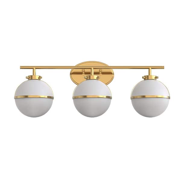 24 in. Modern 3-Light Bathroom Vanity Light with Farmhouse Heritage Brass Globe Shade