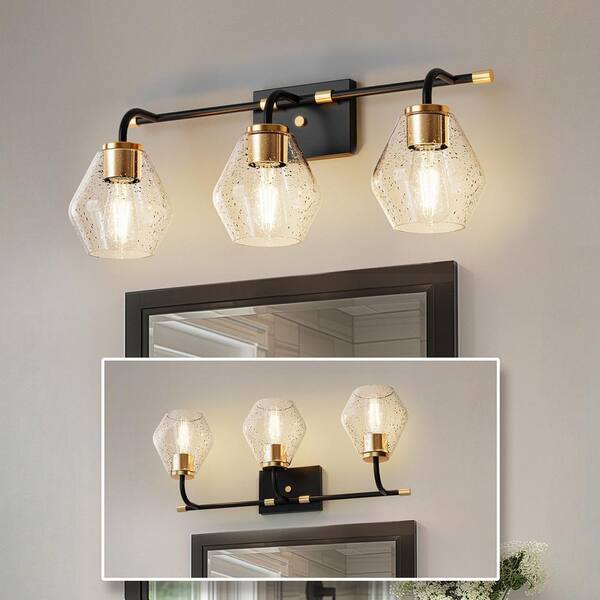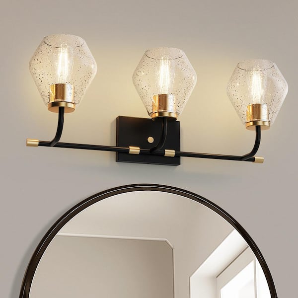 25 in. 3-Light Black Vanity Light with Clear Cone Glass Shades for Bathroom, Mirror, Entryway