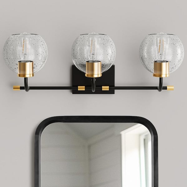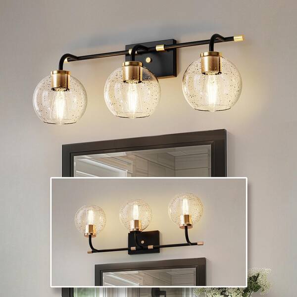 25 in. 3-Light Black Vanity Light with Clear Globe Glass Shades for Bathroom, Living Room, Entryway