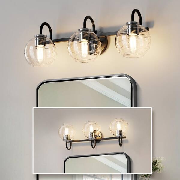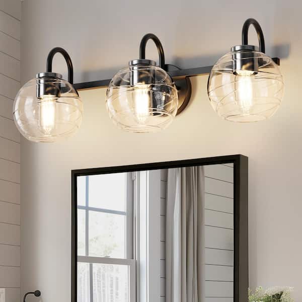 25 in. 3-Light Black Vanity Light with Globe Clear Glass Shades for Bathroom, Mirror, Bedroom