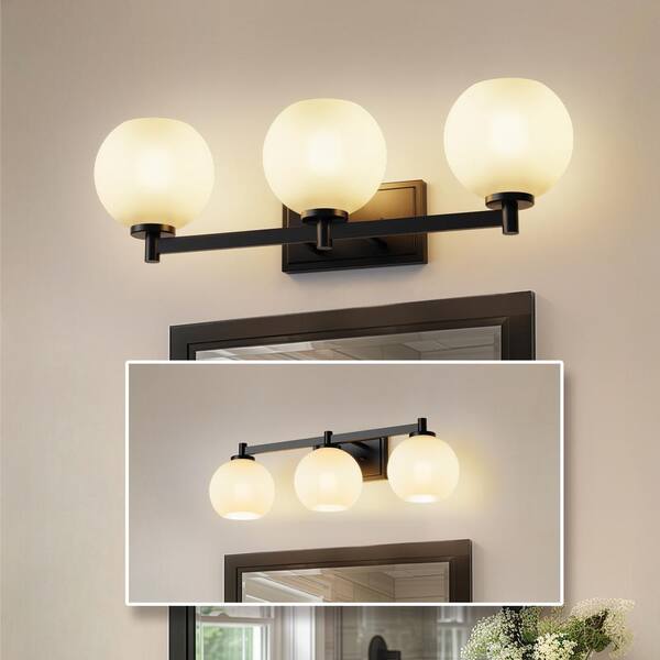 25 in. 3-Light Black Vanity Light with Globe Glass Shades for Bathroom, Mirror, Vanity Area