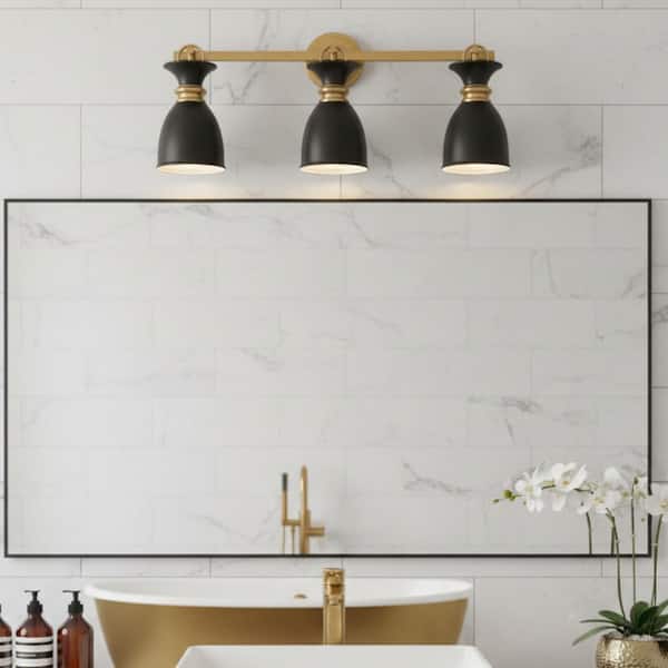 25 in. 3-Light Black and Gold Bathroom Vanity Light, Modern Industrial Wall Sconce for Bathroom, Vanity, and Powder Room