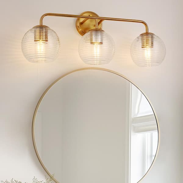 25 in. Gold 3-Light Vanity Light with Globe Textured Glass Shades, Modern Bathroom and Over Mirror Lighting
