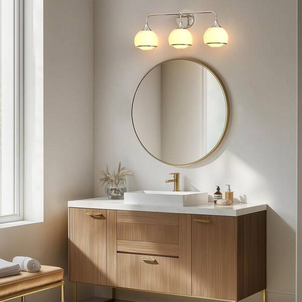 27 in. 3-Light Bathroom Vanity Light with Brushed Nickel Frame and Globe Shades