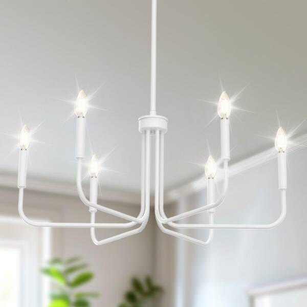 28 in. 6-Light White Farmhouse Rustic Candle Ceiling Chandelier Light, Adjustable Height for Dining Room