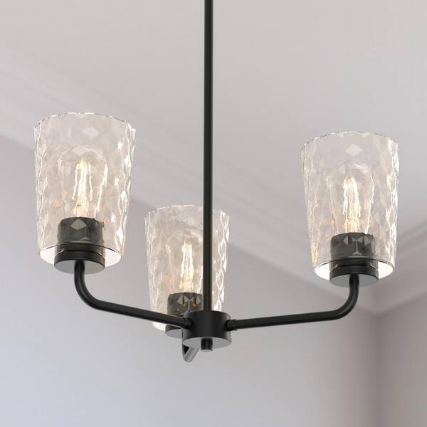 3-Light Black Finish with Glass Empire Chandelier Convertible to Semi-Flush Mount for Kitchen, Dining Room and Foyer