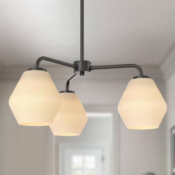 3-Light Black Finish with Glass Empire Chandelier Convertible to Semi-Flush Mount for Kitchen, Dining Room and Foyer