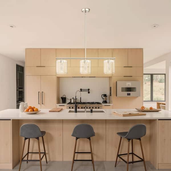 3-Light Brushed Nickel Modern Kitchen Island Integrated LED Linear Pendant Light 3CCT with Clear Glass Shades