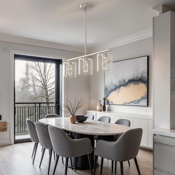 3-Light Brushed Nickel Modern Kitchen Island Integrated LED Pendant Light fixtures, Linear Chandelier with Clear Glass