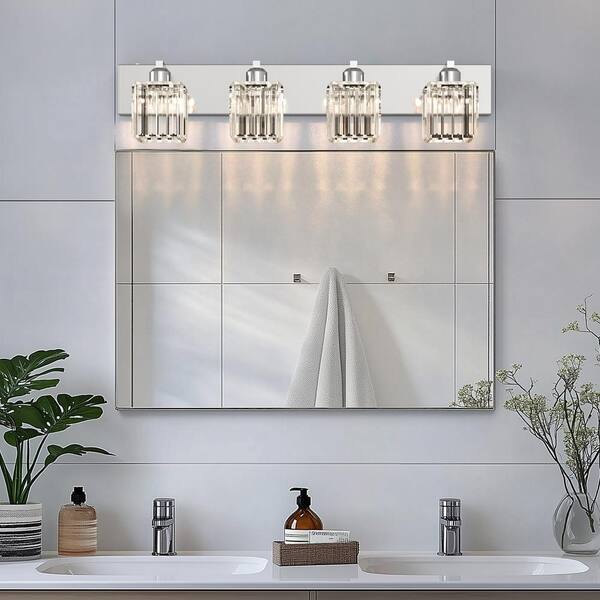 32 in. 4-Light Modern Crystal Bathroom Integrated LED Vanity Light Fixture, Chrome with Clear Glass Shades