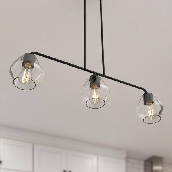 32 in. Modern 3-Light Indoor Island Pendant Light, Black with Glass Shade for Bar, Dining Room, and Kitchen Island