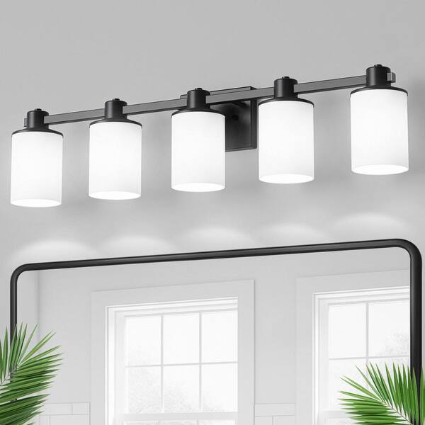 33 in. 5-Light Matte Black Bathroom Vanity Light, Frosted Glass Shade Wall Sconce for Bedroom, Living Room, Hallway