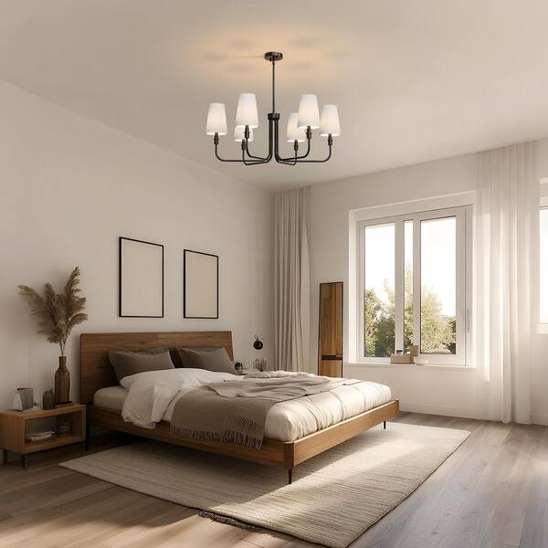 33 in. 6-Light Black Farmhouse Chandelier with White Linen Shades for Budget Homes