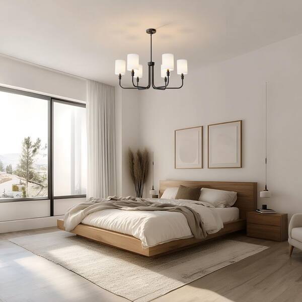 33 in. 6-Light Black Farmhouse Chandelier with White Linen Shades for Budget Homes