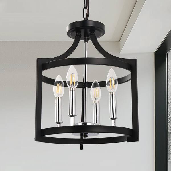 4-Light Chrome Drum Pendant Light, Convertible Semi Flush Mount Ceilingfor Dining Room,Bedroom, Foyer, Entryway