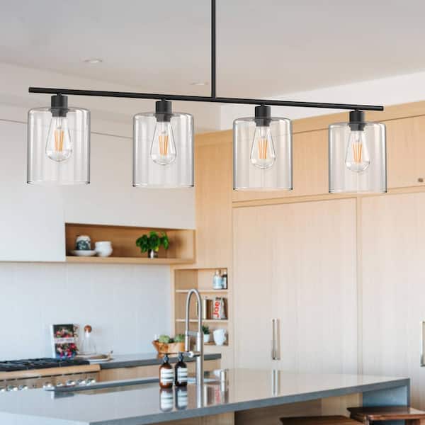 4-Light Matte Black Modern Island Chandelier Fixture with Clear Glass Shades