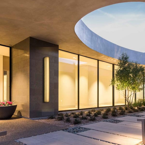 41 in. 30-Watt Black Outdoor Rectangle Hardwired Integrated LED Lantern Wall Sconce with Resin Shade 3000K Waterproof