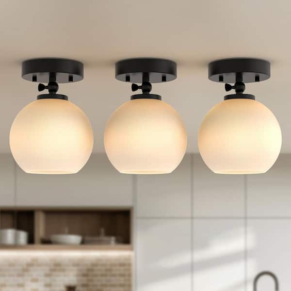 5 in. 1-Light Black Semi-Flush Mount Ceiling Light w/ Glass Shade, Convertible to Pendant Light and Wall Sconce (3-Pack)