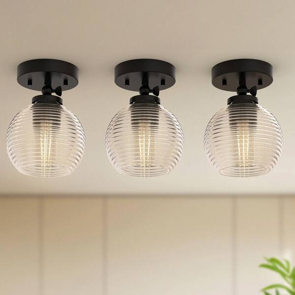 5 in. 1-Light Black Semi-Flush Mount Ceiling Light w/ Glass Shade, Convertible to Pendant Light and Wall Sconce (3-Pack)