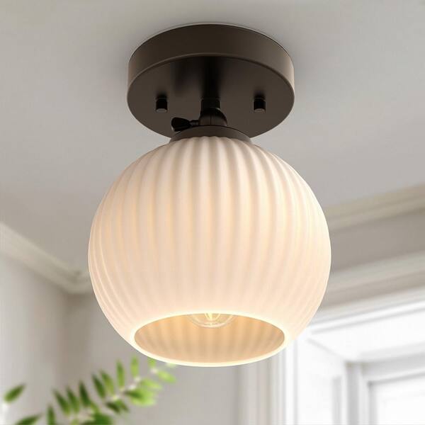 5 in. 1-Light Black Semi-Flush Mount Ceiling Light with Glass Shade, Convertible Pendant Light and Wall Sconce (3-Pack)