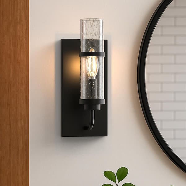 5 in. Farmhouse Black Wall Sconce, Vintage Industrial Vanity Light Fixture with Clear Glass Shade for Bathroom