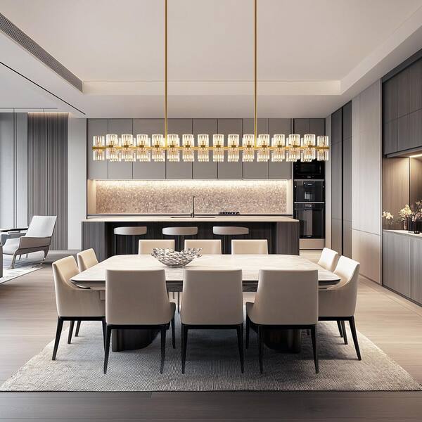 53 in. 60-Light Gold Rectangular K9 Crystal Chandelier for Modern Living Room, Dining Room(70-G4 Bulbs Included)