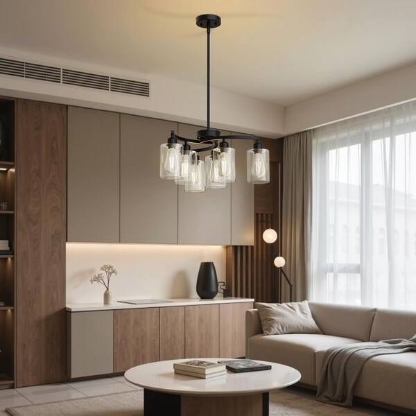 6-Light Black Chandeliers with Clear Shade Adjustable Hanging Industrial Pendant Lighting for Kitchen Island
