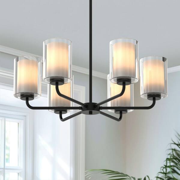 6-Light Black Transitional Chandelier with Glass Shade for Kitchen, Dining Room, Foyer, Convertible to Semi-Flush Mount