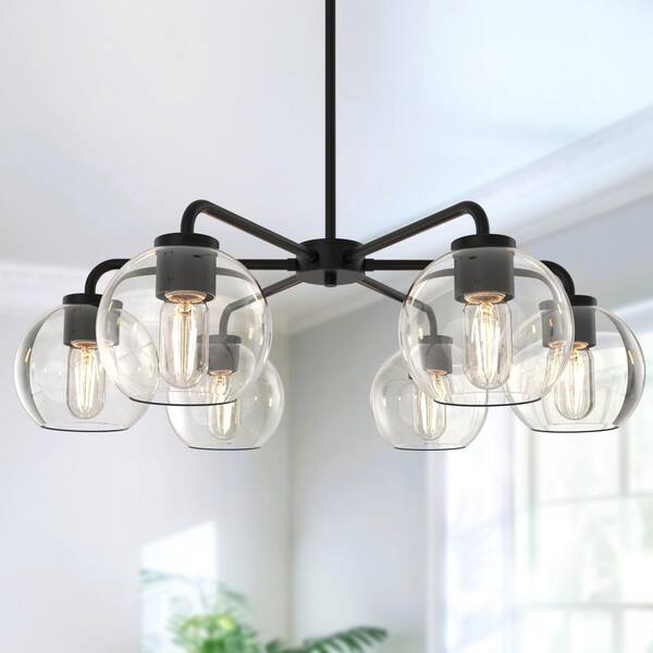 6-Light Black Transitional Chandelier with Glass Shade for Kitchen, Dining Room, Foyer, Convertible to Semi-Flush Mount