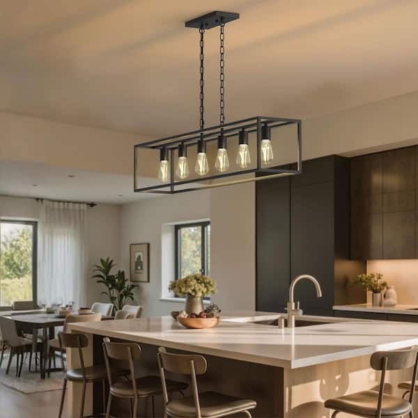6-Light Matte Black Farmhouse Kitchen Island Lighting, Modern Rectangular Chandeliers for Dining room Foyer