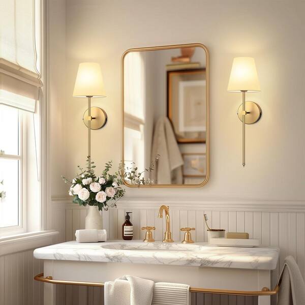 8 in. 1-Light Gold Wall Sconce, Rechargeable Wall Sconce with Detachable Bulbs and Fabric Shade for Living Room (2-Pack)