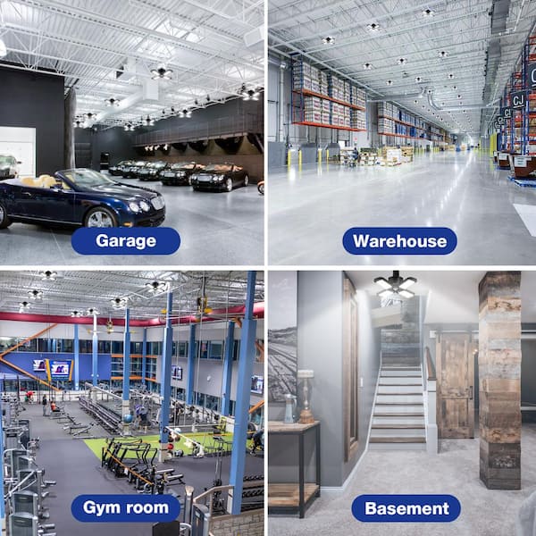 80-Watt Black Deformable LED Adjustable Garage Light Semi-Flush Mount Lighting, 4-Leaf 6000K Daylight White
