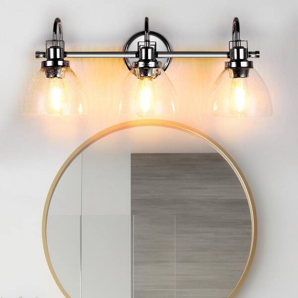 Industrial Rustic 25 in. 3-Light Brushed Nickel Seeded Glass Vanity Light, E26 Base without Bulbs