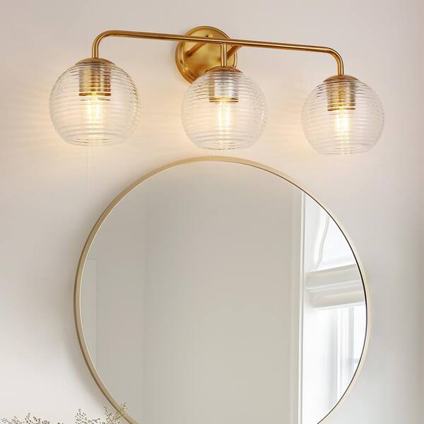 Modern 25 in. 3-Light Gold Vanity Light Fixture with Globe Textured Glass Shades for Over Mirror and Bathroom