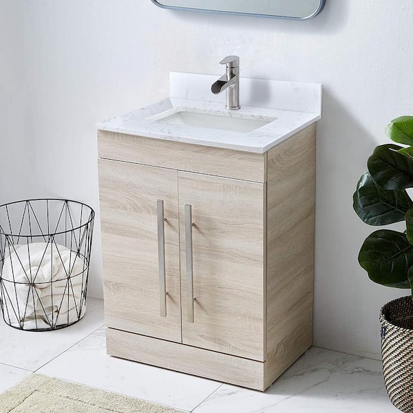 24 in. W x 22 in. D Engineered Stone Composite Vanity Top in White with White Rectangular Single Sink