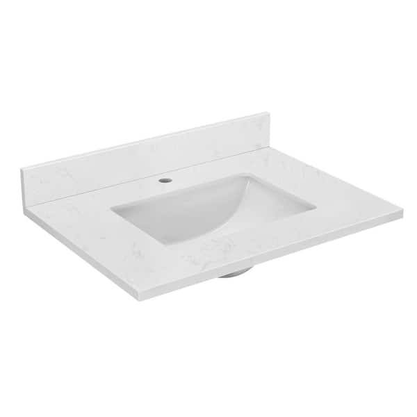 30 in. W. x 22 in. D Engineered Stone Composite White Rectangular Single Sink Vanity Top in White