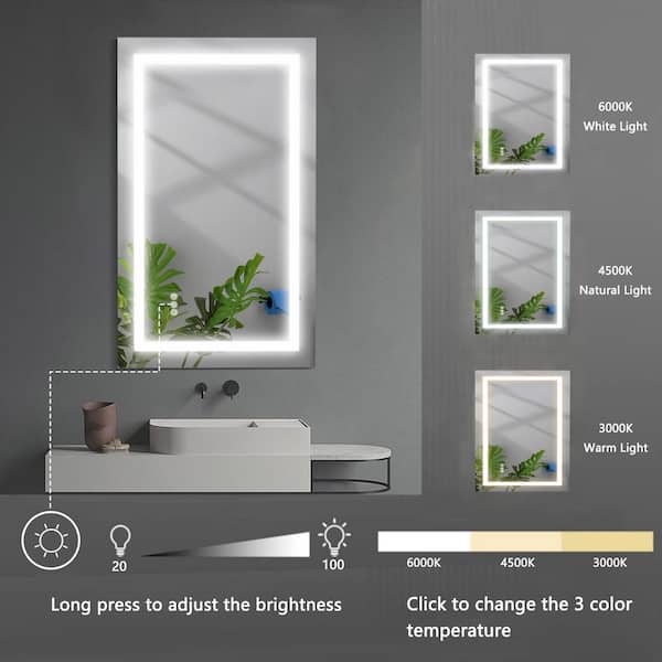 32 in. W x 20 in. H Rectangular Frameless Wall-Mounted Dimmable Defogging LED Bathroom Vanity Mirror Front Dimmer Light