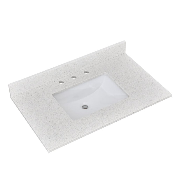 36 in. W x 22 in. D Quartz Stone White Rectangular Single Sink Bathroom Vanity Top with Center Sink Backsplash