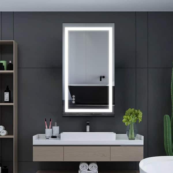 36 in. W x 24 in. H Rectangular Frameless Wall-Mounted Dimmable Defogging LED Bathroom Vanity Mirror Front Dimmer Light