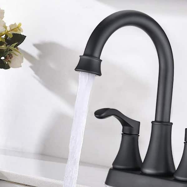 4 in. Centerset 2-Handle High Arc Bathroom Faucet with Drain Kit Included in Matte Black