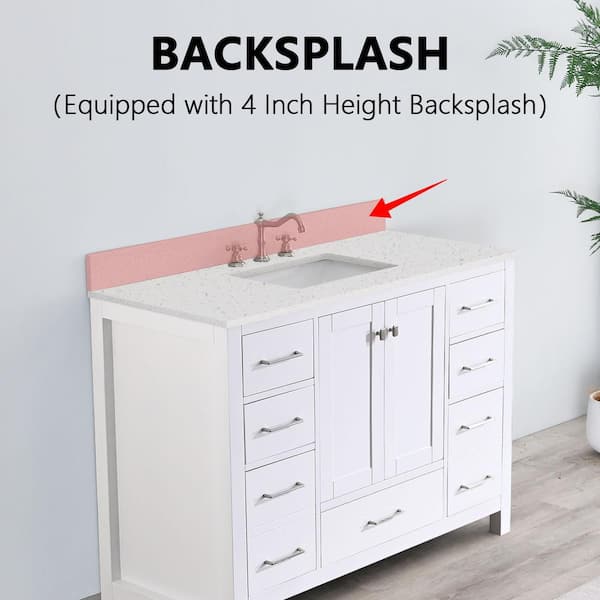 48 in. W x 22 in. D Quartz Stone White Rectangular Single Sink Bathroom Vanity Top with Center Sink Backsplash