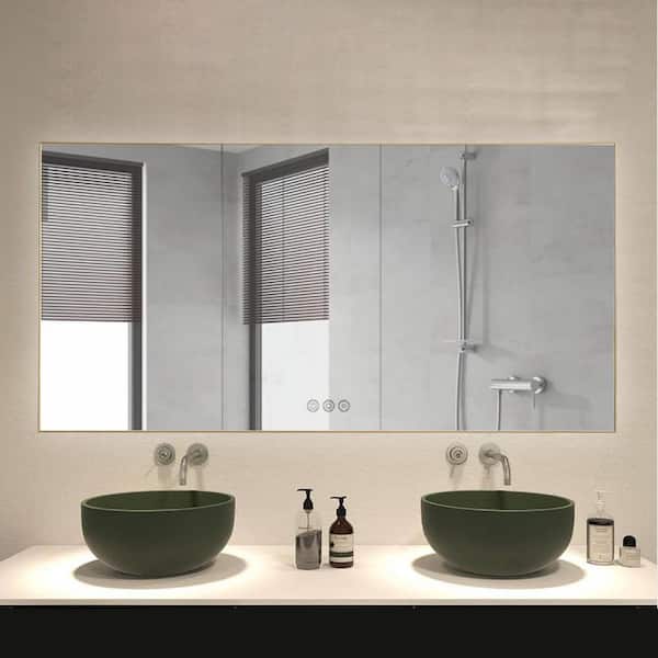 72 in. W x 36 in. H Rectangular Aluminum Framed Anti-Fog LED Light Dimmable Wall Bathroom Vanity Mirror in Gold