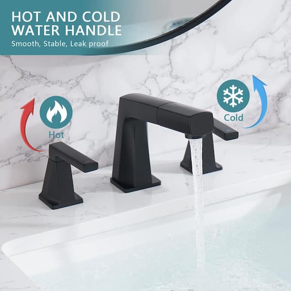8 in. Widespread 2-Handles Pull Out Bathroom Faucet with Pop-Up Drain Kit in Matte Black