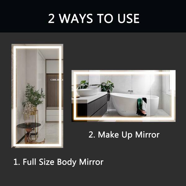 84 in. W x 32 in. H Rectangular Frameless Anti-Fog LED Light Wall Bathroom Vanity Mirror Front Light with Dimmer