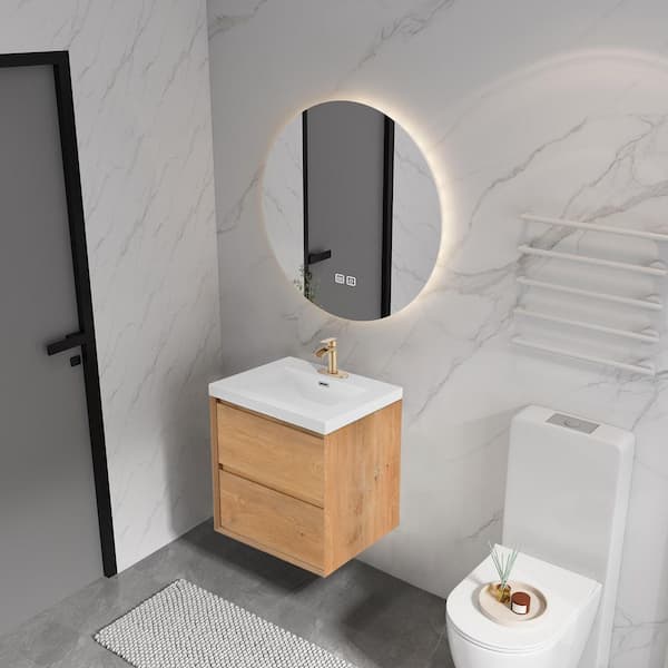 Aeroline 24 in. W x 19.29 in. D x 25.59 in. H Single Sink Float Wood Bath Vanity with White Resin Integral Top Assembled