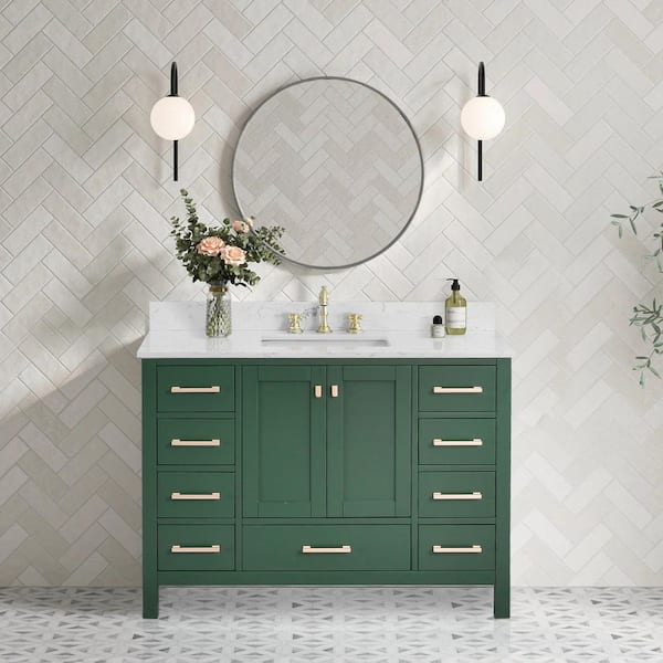 Bath Mist 48 in. W Single Sink Freestanding Bath Vanity in Green with White Engineered Top