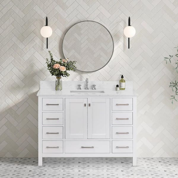 Bath Mist 48 in. W Single Sink Freestanding Bath Vanity in White with White Engineered Top