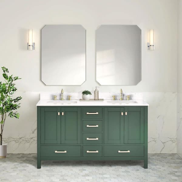 Bath Mist 60 in. W. Double Sink Freestanding Bath Vanity in Green with White Engineered Top
