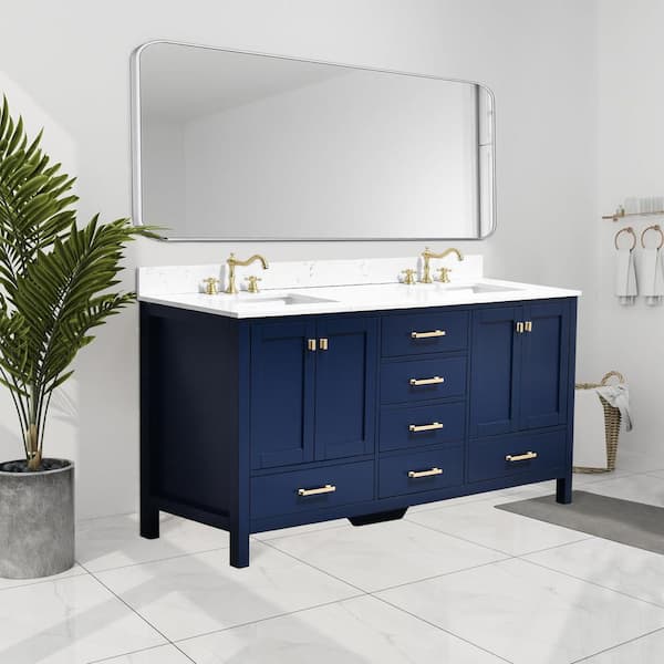 Bath Mist 72 in. W. Double Sink Freestanding Bath Vanity in Blue with White Engineered Top